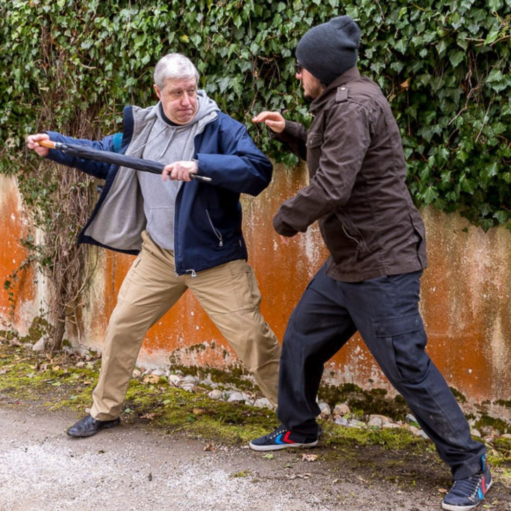 L'autodéfense avec des bâtons est pratiquée depuis des siècles. En cas de mesures offensives, le parapluie compense le manque de force ,de technique de frappe et l'infériorité physique. La confiance en soi qu'il vous apporte empêche votre "sélection" en tant que victime par l'agresseur.