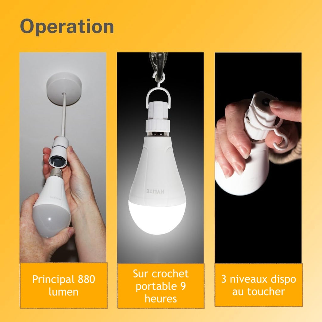 L'ampoule LED de secours HLite est une solution d'éclairage polyvalente à double usage. Fonctionnant comme une ampoule classique de 9 W sur secteur, elle bascule instantanément sur batterie en cas de coupure de courant, offrant un éclairage fiable à tout moment.