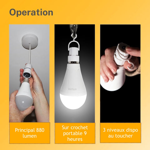 Vissez-la dans n'importe quel culot B22 standard et chargez-la pendant 20 heures pour une performance portable optimale. Son angle de faisceau de 180° assure une diffusion optimale de la lumière dans les pièces, les espaces de travail et les espaces extérieurs.