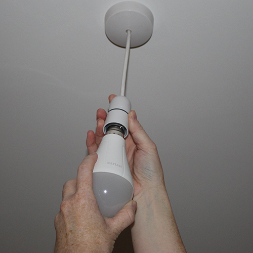 Utilisez-la comme une ampoule à baïonnette B22 standard dans n'importe quel luminaire, ou fixez-la grâce au crochet fourni pour une utilisation manuelle ou suspendue.
